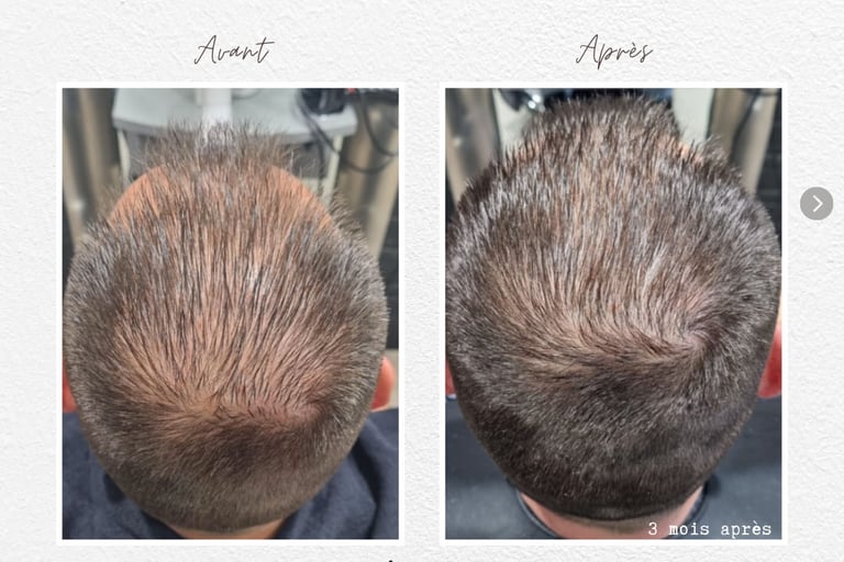 Avant /Après ... La cure de 5 passages toutes les 2 semaines et l'entretien à la maison ( shampooing + sérum chaque soir )
